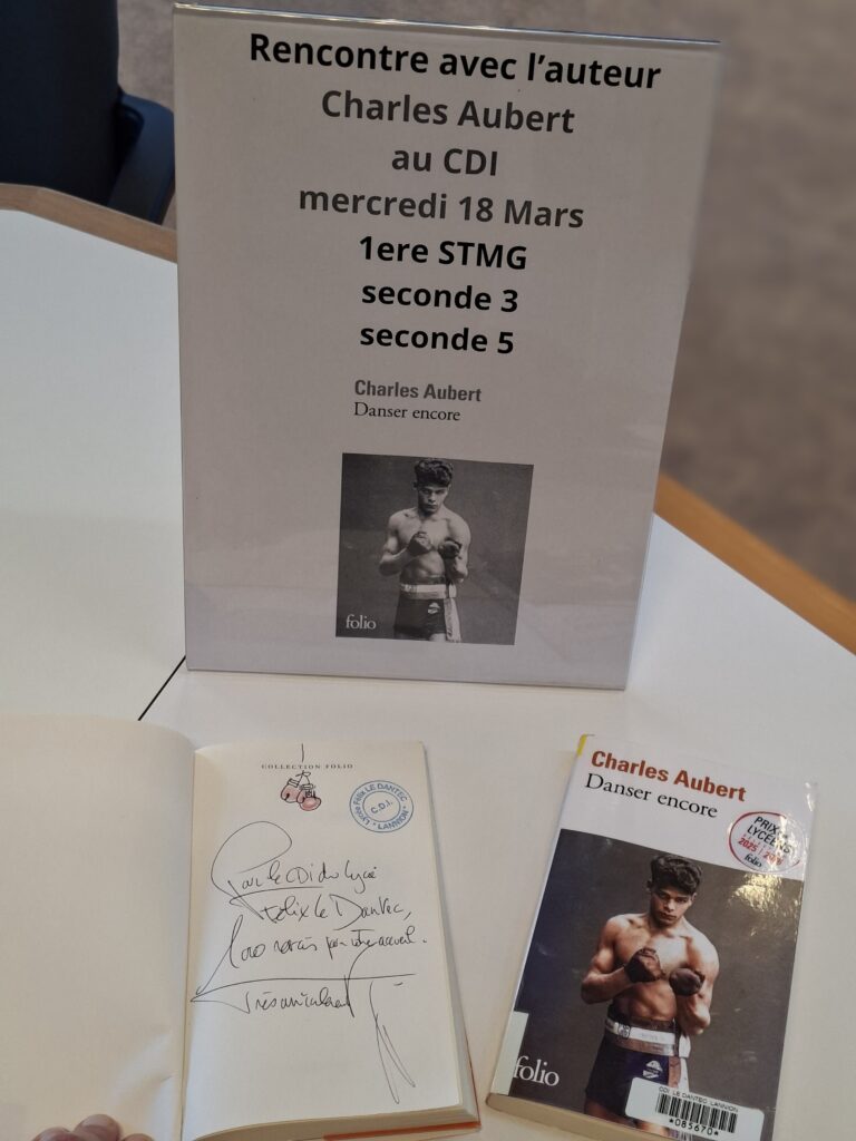 Grâce à notre partenariat de longue date avec la librairie Gwalarn et Emmanuelle George, libraire, nous avons eu la chance d’accueillir le romancier Charles Aubert, mercredi 18 mars au CDI, dans le cadre du Cercle de lecture du lycée et de travaux en classe avec les professeurs de français Mme Bonnefon et Mme Gelgon.